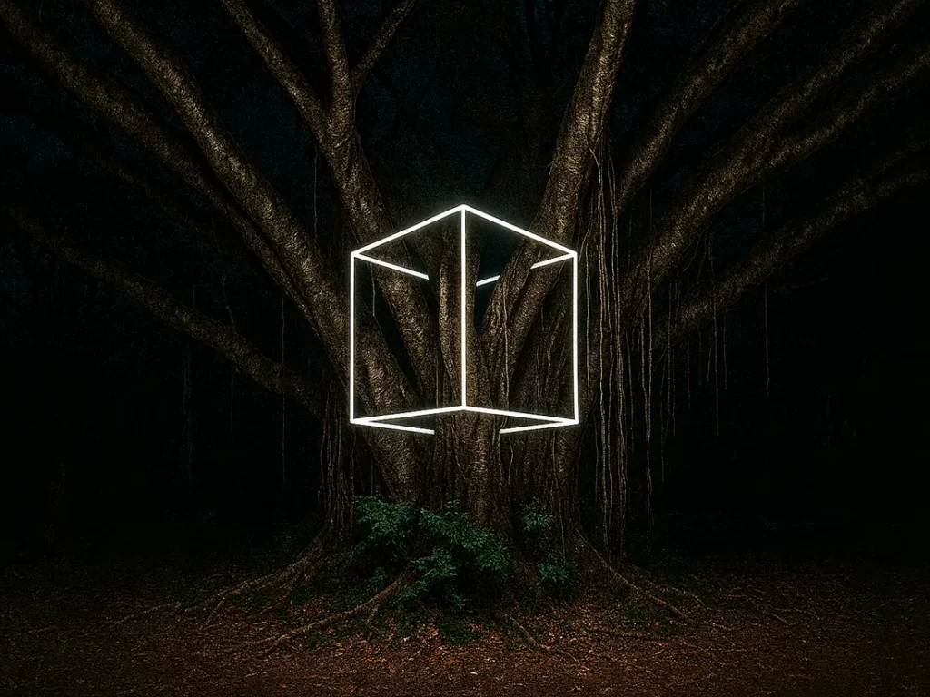 B② 寄生方塊怪 製作:蔡遵弘、張翔華、黃意雯、吳佳穎、簡湘庭、高秉誠、馬崇賢、周家羽、楊子慕五件戶外光詭喚醒互動公共藝術:波動溜溜怪、寄生方塊怪、 怪倒影鏡面怪、埋伏閃電怪、 大圓日蝕怪,等著民眾去喚醒,共創人們與仿生光生態藝術。每隻仿生光詭鬼,一開始處在暗光沉睡,當人們一靠近時,每隻仿生詭鬼便會被喚醒開始慢慢「呼吸」,呈現漸暗漸亮之喘息貌。當一半的仿生光詭鬼有人靠近時,全部仿生光詭鬼彼此互通聯繫後,一起「閃爍3次」表示有被擾醒。當全部仿生詭鬼都有人靠近時,全部詭鬼「閃爍10秒」表示全部驚醒。